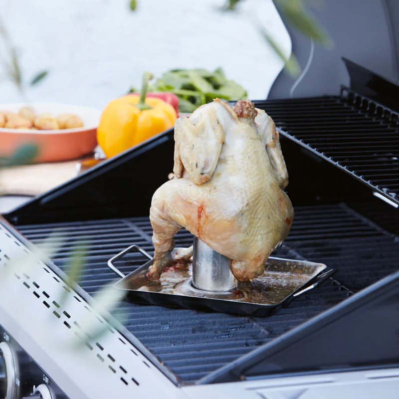 Met de Barbecook kiphouder uit RVS bereidt u een hele kip eenvoudig en gelijkmatig. De duurzame constructie en het praktische ontwerp zorgen voor sappige, perfect gegrilde kip bij elke barbecue.