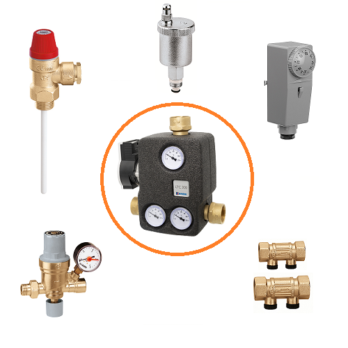 Anticondensatie en beveiliging voor houtgestookte cv-ketels. Bestaat uit de volgende componenten: