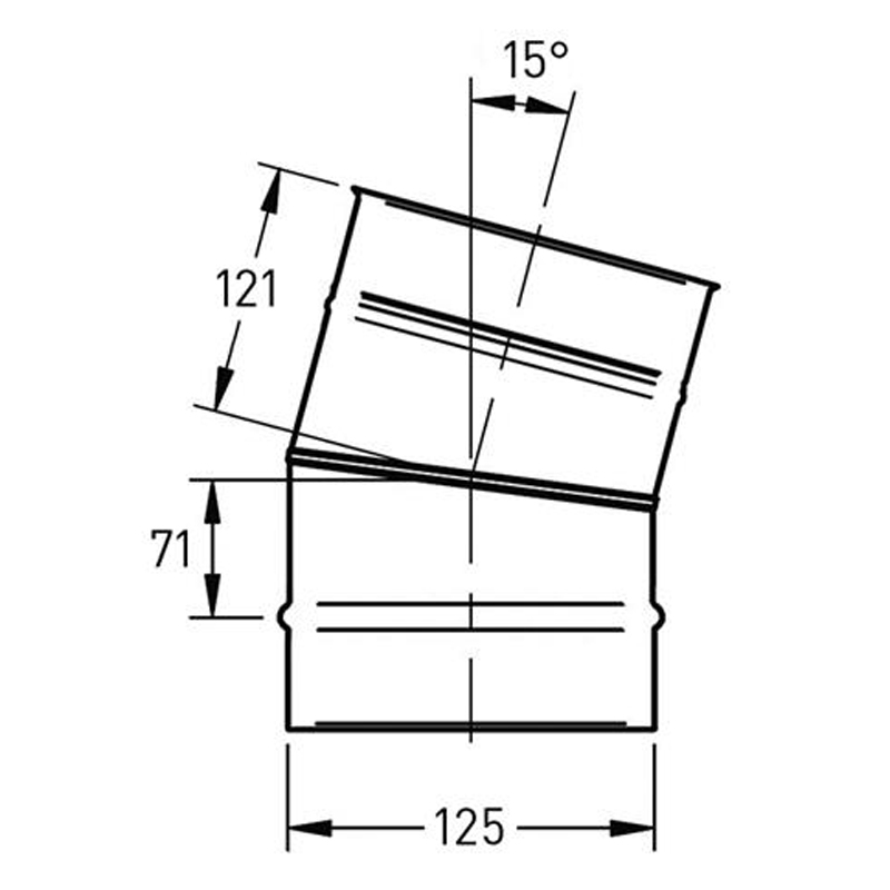 Een 15° bocht wordt vaak gebruikt om lichte obstakels te omzeilen of een klein hoogteverschil te corrigeren in het rookkanaal. Door het enkelwandige ontwerp blijft het onderdeel licht van gewicht en makkelijk te plaatsen.