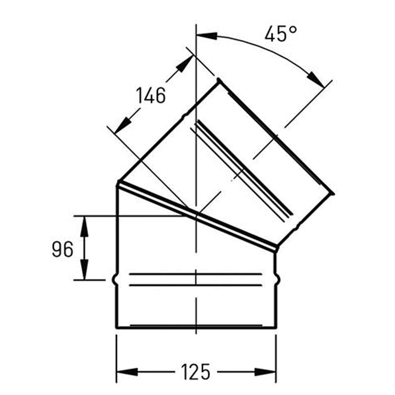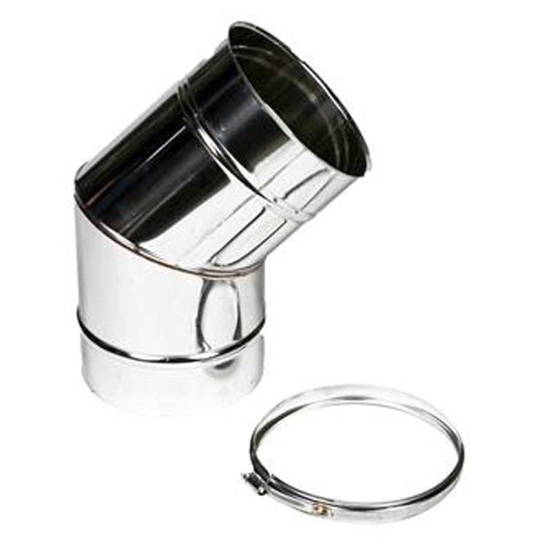 Een bocht van 45° is ideaal om een rookgaskanaal langs obstakels te leiden zonder scherpe hoeken, wat de trek ten goede komt.