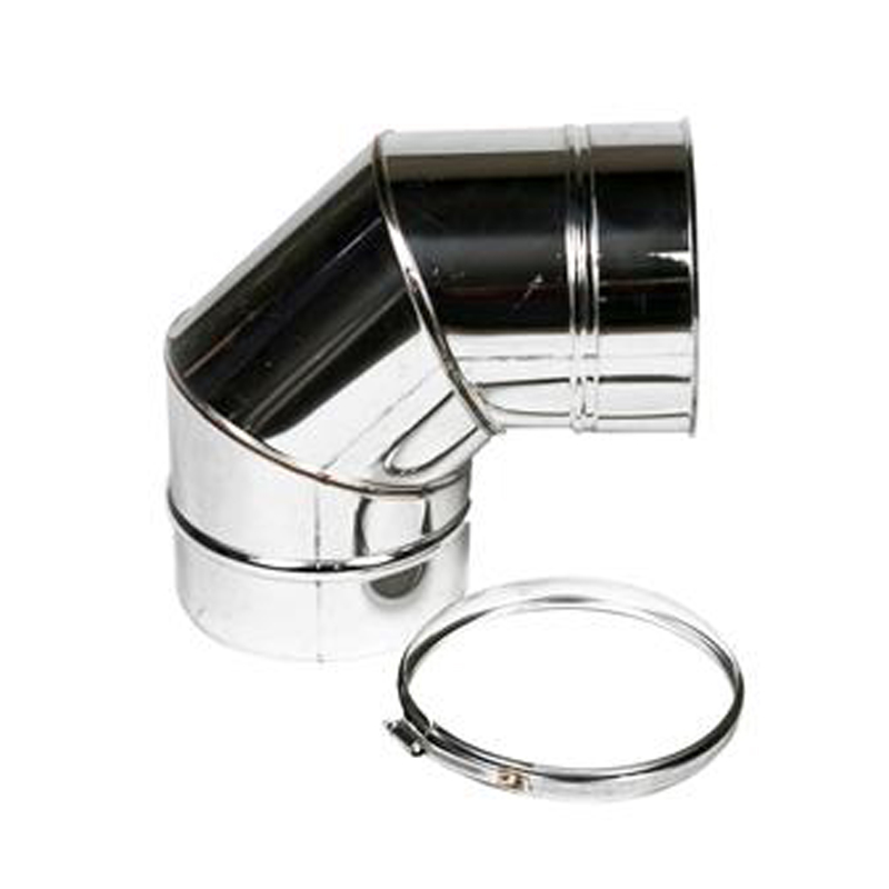 Deze bocht wordt gebruikt wanneer het rookkanaal een scherpe bocht moet maken, bijvoorbeeld bij de aansluiting op een kachel, haard of muurdoorvoer. Hoewel de bocht haaks is, blijft de doorstroming van rookgassen optimaal.