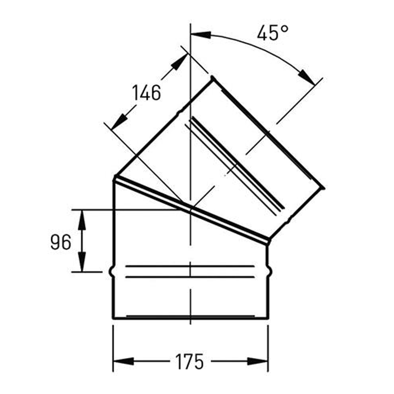 Met deze bocht Ø175 mm – 45° realiseer je een veilige en nette bocht in je rookgasinstallatie.