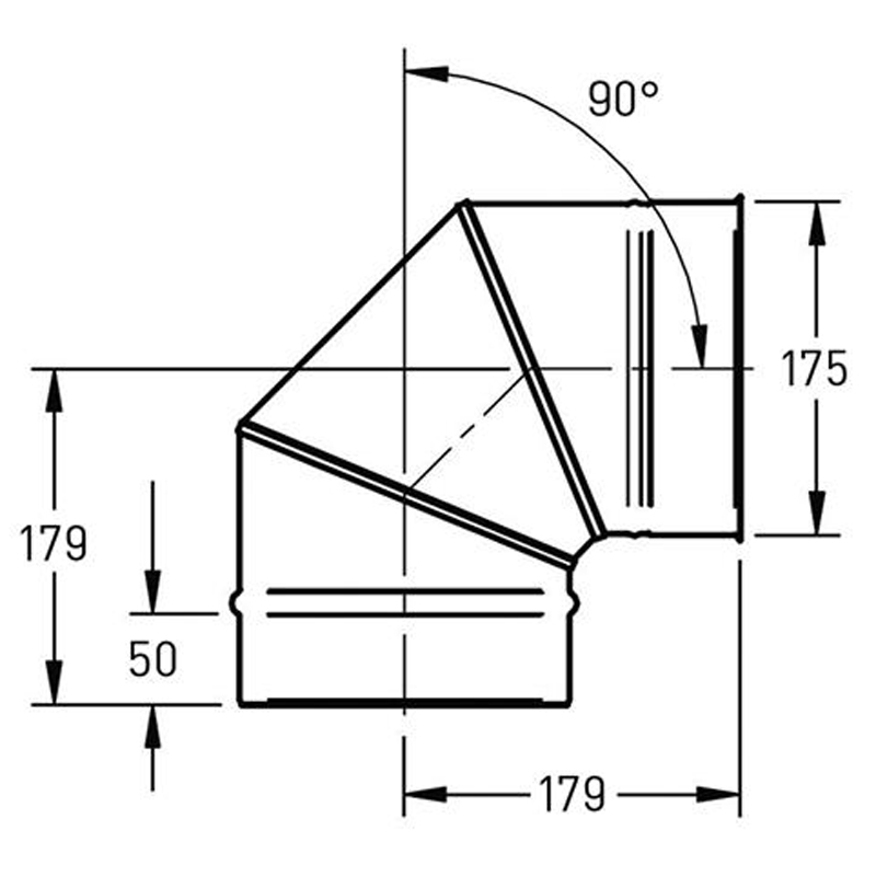 Met deze bocht Ø175 mm – 90° maak je een solide en veilige haakse aansluiting in je rookgasafvoer.