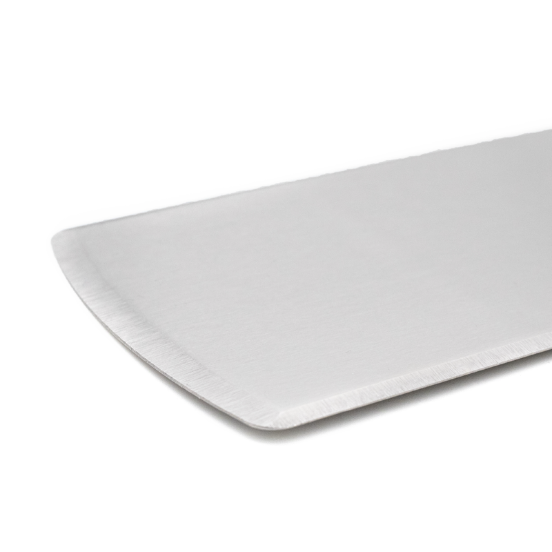 Gemaakt van hoogwaardig roestvrij staal met een comfortabele, hittebestendige handgreep is deze spatel niet alleen duurzaam maar ook prettig in gebruik. De scherpe voorrand maakt het gemakkelijk om onder het voedsel te schuiven, terwijl de opstaande zijkanten extra stabiliteit bieden bij het verplaatsen.