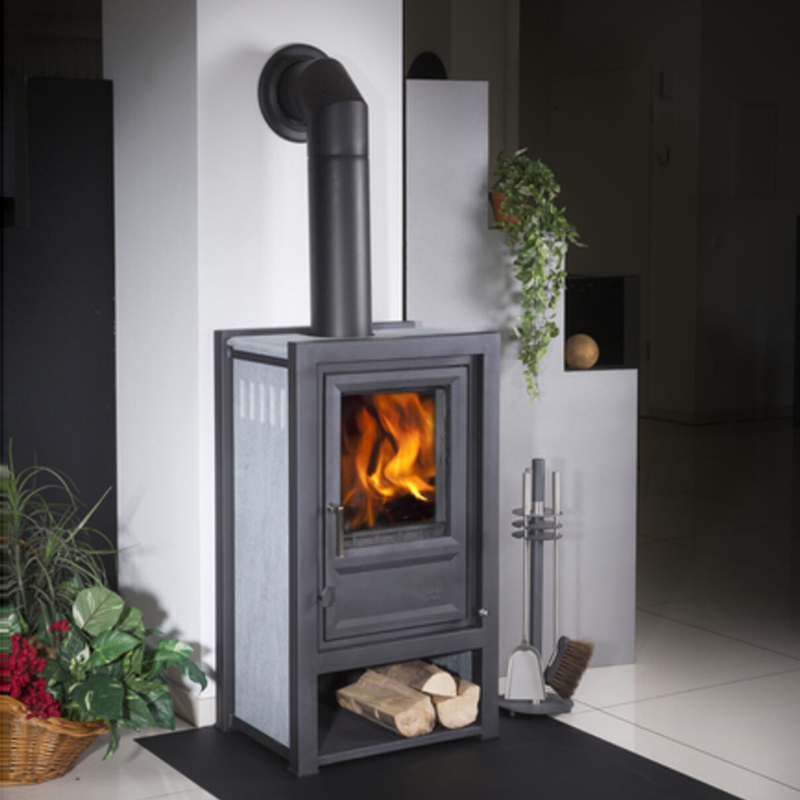 - Gebruiksvriendelijke bediening: De kachel is eenvoudig te bedienen door de geïntegreerde luchtregeling en de grote vuldeur aan de voorkant