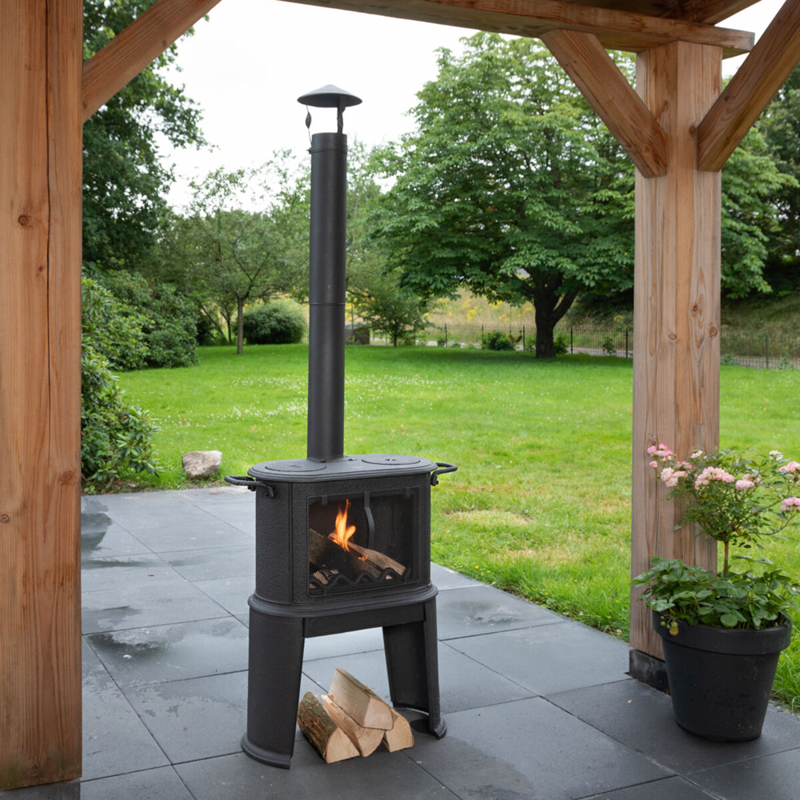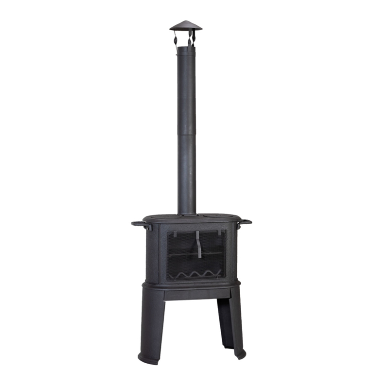 De Globe Fire Vulture is dé keuze voor wie buiten koken en sfeervolle verwarming wil combineren in één robuust toestel. Deze gietijzeren houtkachel beschikt over een grote grillplaat van 60 cm breed én twee kleinere grilloppervlakken, waarmee u meerdere gerechten tegelijk kunt bereiden boven een knapperend houtvuur.