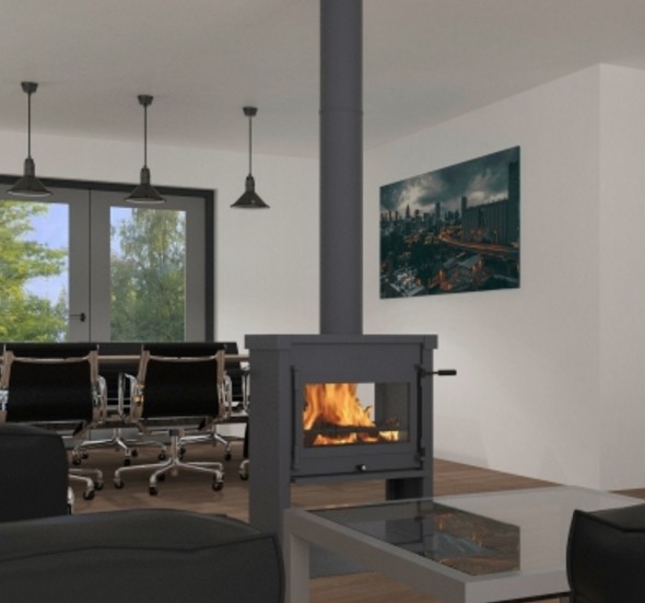 - Doorkijkfunctie: Geniet van het vlammenspel aan beide zijden van de kachel, perfect voor plaatsing in het midden van de kamer