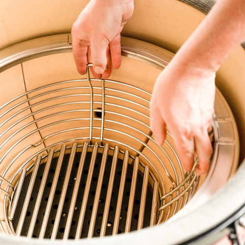 De Kamado Joe® – Charcoal Basket – Big Joe® is ontworpen voor grillers die snelheid en efficiëntie belangrijk vinden bij het aansteken en onderhouden van hun vuur. Deze robuuste houtskoolmand is vervaardigd uit roestvrij staal en maakt het mogelijk om houtskool netjes te groeperen, waardoor een betere luchtcirculatie ontstaat. Dit resulteert in een snellere opwarming en een stabielere temperatuur tijdens het grillen.