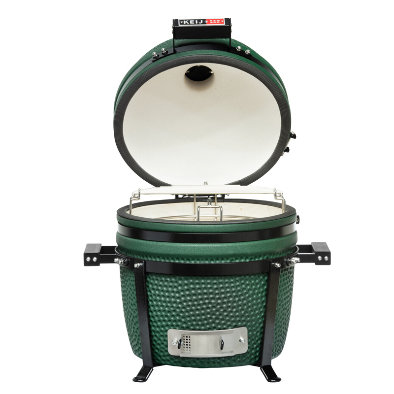 Deze kamado is vervaardigd uit duurzaam cordieriet keramiek, dat garant staat voor uitstekende hittebehoud en gelijkmatige garing. Met gietijzeren en roestvrijstalen onderdelen is hij gebouwd om lang mee te gaan. De instelbare luchttoevoer zorgt voor optimale controle, van slow cooking tot direct grillen.