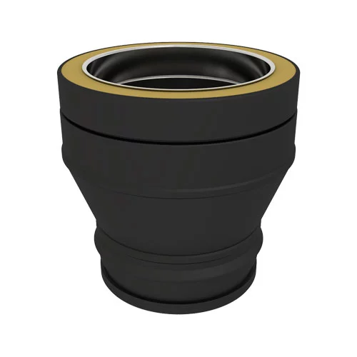 Het Koppelstuk EW naar Ø100 mm – Dubbelwandig rookkanaal zwart verbindt een enkelwandig gedeelte met het dubbelwandige systeem. Daarmee combineer je het gemak van EW-delen met de isolatie en veiligheid van dubbelwandig. De pasvorm is precies, waardoor de koppeling betrouwbaar en strak oogt. De zwarte kleur sluit naadloos aan op het systeem. Dit maakt het onderdeel geschikt voor zowel nieuwe opbouwen als aanpassingen.