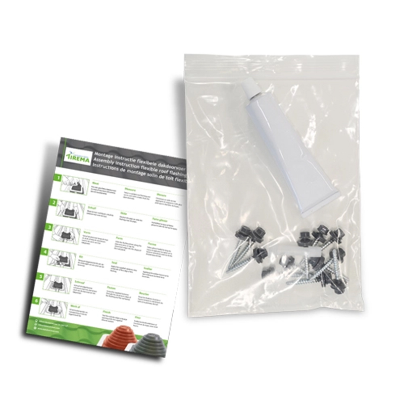 De Montage kit 1 is de ideale keuze voor wie op zoek is naar een complete en efficiënte oplossing voor het bevestigen van dakdoorvoeren binnen het opgegeven diameterbereik. De kit zorgt voor een veilige, waterdichte en professionele montage.