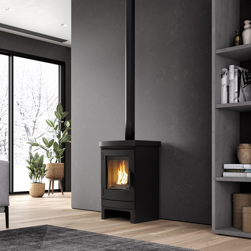 - Compact formaat: Slechts 80 cm hoog, ideaal voor kleine ruimtes of plaatsing in een bestaande schouw
