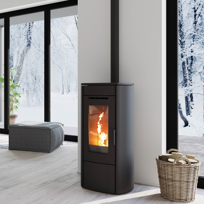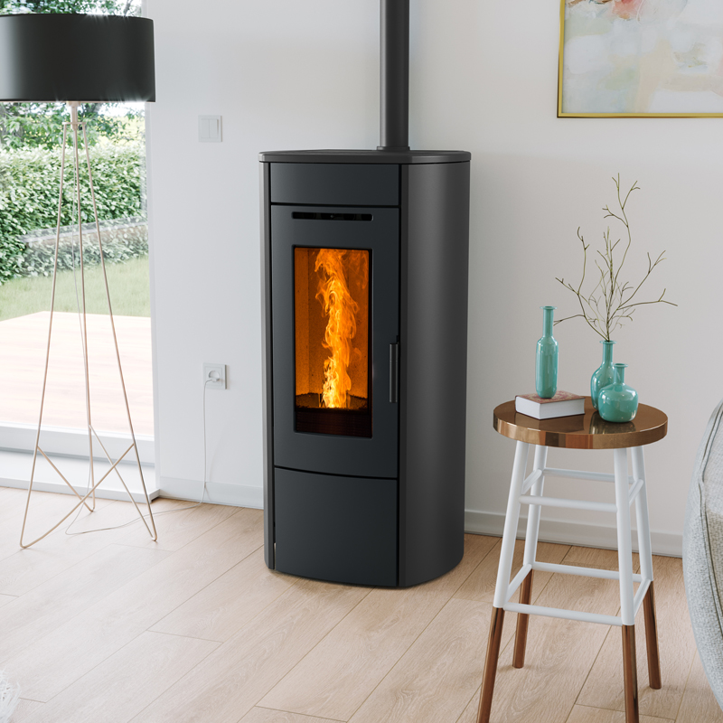 De Ilvar 9 zwart is een krachtige pelletkachel met een strak en tijdloos ontwerp. Dankzij het hoge verwarmingsvermogen tot 9.6 kW is dit model ideaal voor middelgrote tot grote ruimtes. De stijlvolle zwarte zijpanelen geven de kachel een robuuste uitstraling, terwijl geavanceerde technologieën zoals het Auto Pilot System, WiFi-bediening en een zelfreinigend branderbed zorgen voor optimaal gebruiksgemak, minimale onderhoudsbehoefte en fluisterstille prestaties.