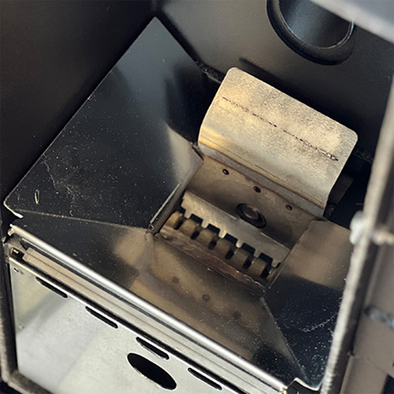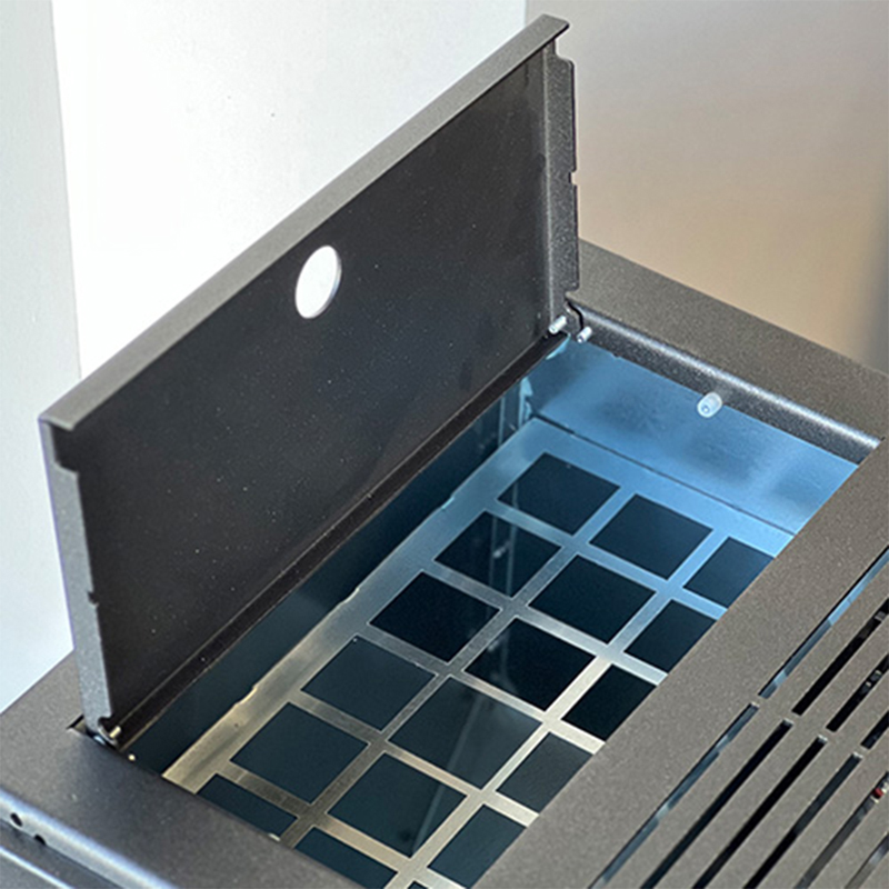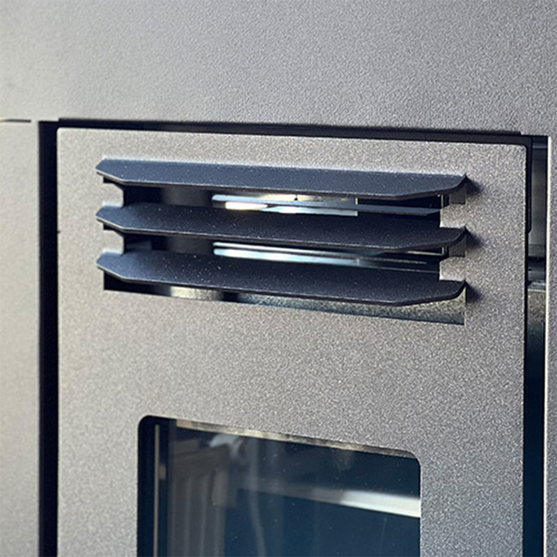 - Ingebouwde ruitreiniging: Het raam wordt gereinigd door een luchtstroom, wat zorgt voor een helder zicht op het vuur