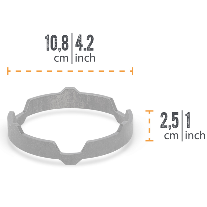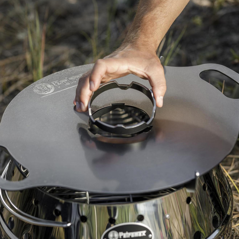 Het opzetstuk is ontworpen met een opstaande rand, waardoor pannen stevig op hun plaats blijven staan en niet verschuiven tijdens het koken. Bovendien zorgt het open ontwerp ervoor dat je gemakkelijk brandstof kunt toevoegen zonder het opzetstuk te verwijderen.