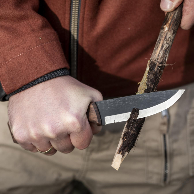 De ergonomische handgreep biedt een stevige grip, zelfs met natte handen of handschoenen aan. Dankzij het uitgebalanceerde ontwerp ligt het mes prettig in de hand, terwijl het gewicht zorgt voor de nodige slagkracht. Dit maakt het Petromax Bushcraft Knife tot een essentieel hulpmiddel voor bushcraft, kamperen, jagen of andere outdooractiviteiten.