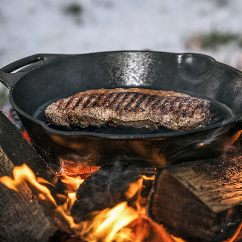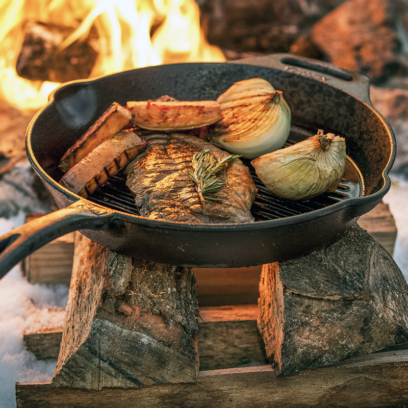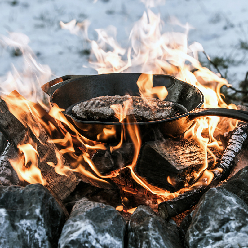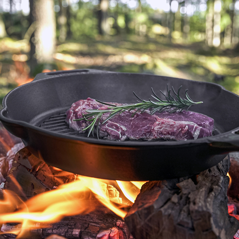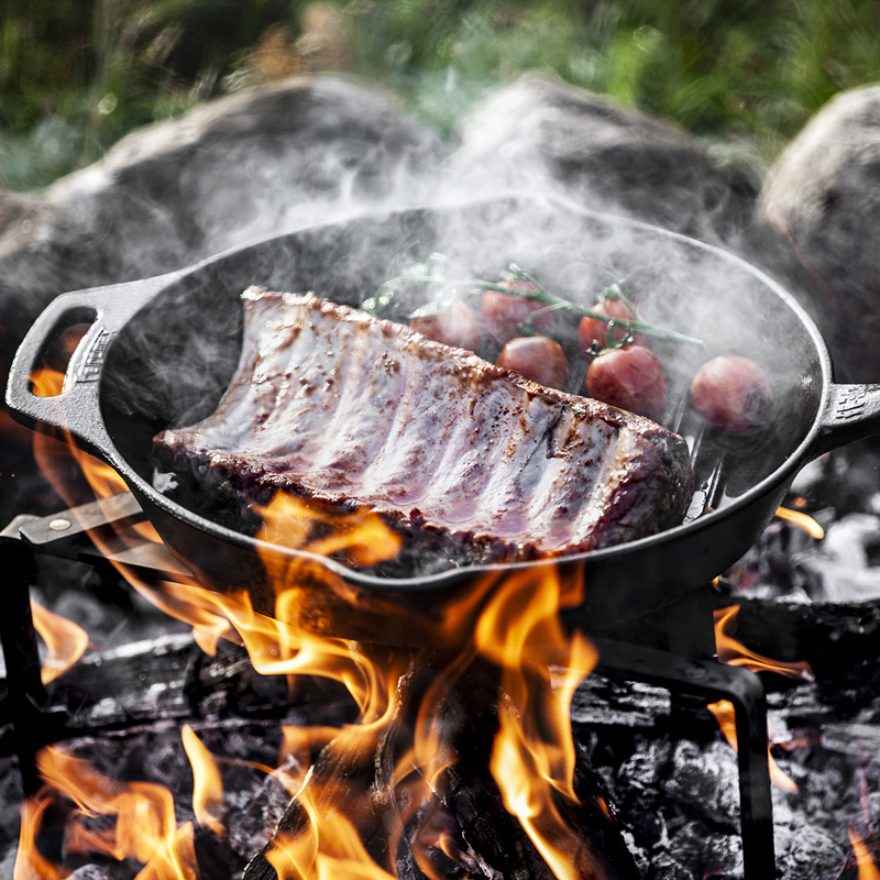 De skillet is geschikt voor gebruik op het fornuis, in de oven, op de barbecue of direct boven open vuur. Door het natuurlijke antiaanbakeffect en de robuuste constructie is deze pan perfect voor zowel binnen- als buitenkoken. De praktische handgrepen zorgen voor extra veiligheid en gebruiksgemak.