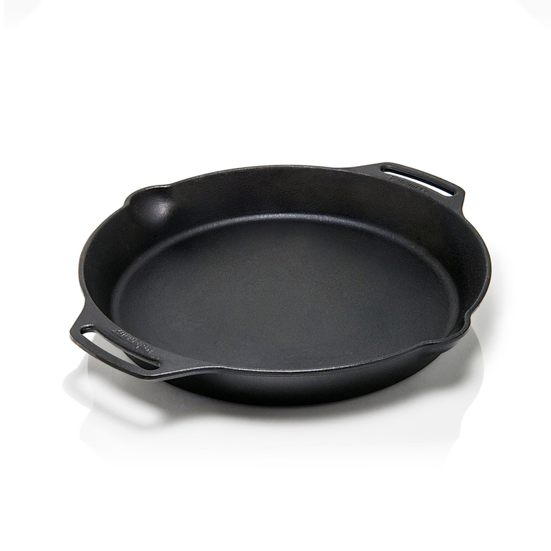De Petromax Gietijzeren Skillet met 2 handvatten 35 cm is een absolute krachtpatser in de buitenkeuken. Met een diameter van 35 cm biedt deze pan ruimte aan royale porties, ideaal voor gezelschappen of uitgebreide éénpansgerechten. Het gietijzer garandeert een gelijkmatige warmteverdeling, zodat elk ingrediënt perfect gaart, of u nu op open vuur, een barbecue of fornuis kookt.