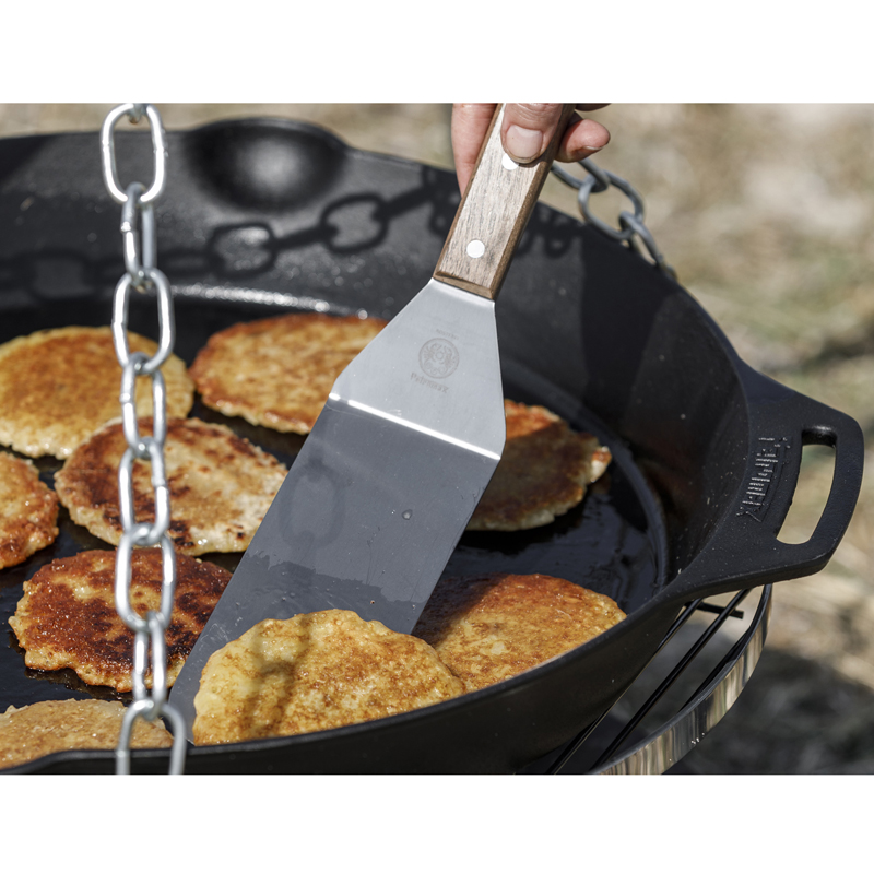 De Petromax Skillet 50 cm met dubbele handvatten is ontworpen voor serieuze kookprojecten. Of u nu op een evenement staat of met familie en vrienden kookt in de buitenlucht, deze pan levert de ruimte, kracht en kwaliteit die u nodig heeft. Een onverwoestbaar werkpaard voor elk groots kookavontuur.