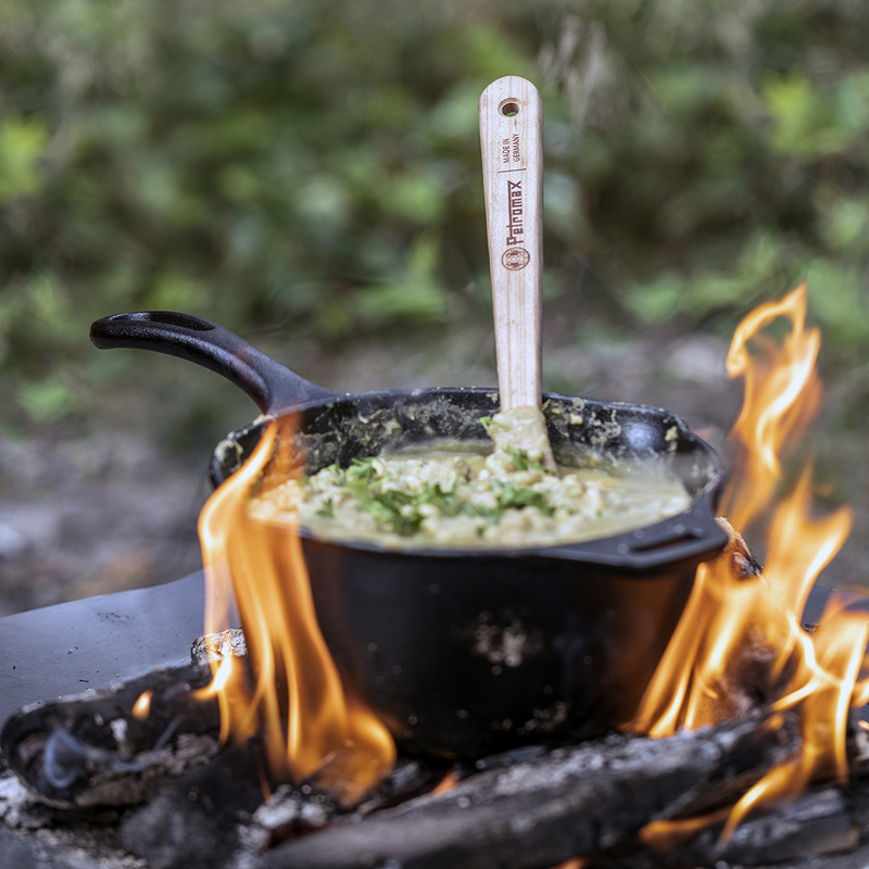 De Petromax Houten Spatel is een stijlvolle en stevige keukentool van natuurlijk hout, perfect voor het omdraaien, roeren en serveren tijdens het koken op open vuur of in de keuken.