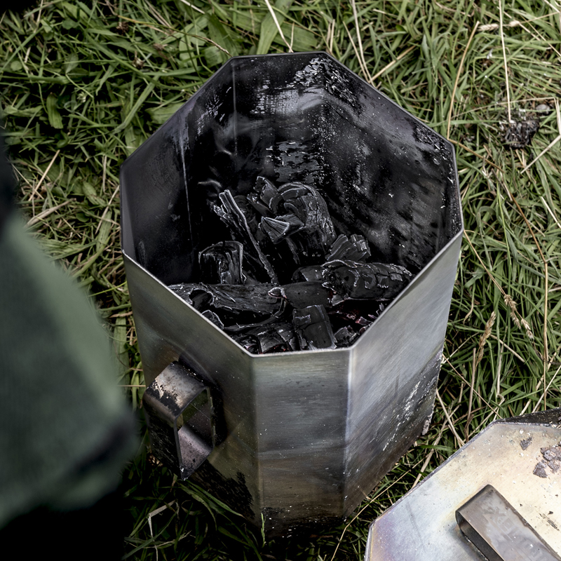 De Petromax Houtskoolbrander is een krachtige en efficiënte brander met een inhoud van 10 liter, ontworpen voor het snel en gelijkmatig aansteken van houtskool en briketten – perfect voor buitenkoken met Dutch Ovens of grills.
