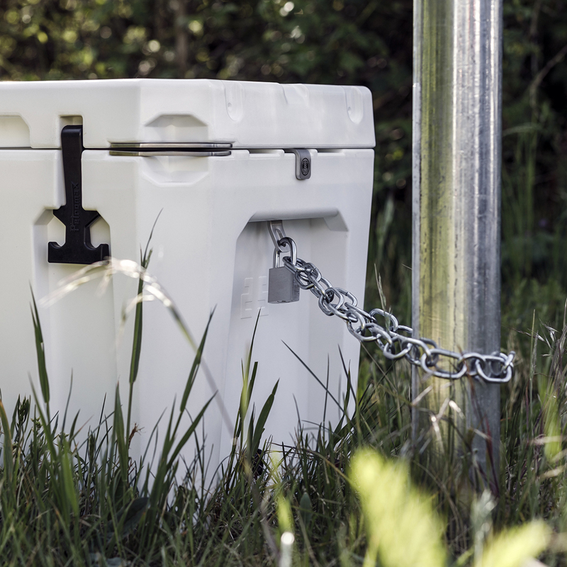 • Extra beveiliging: Voor het afsluiten van uw Petromax koelbox met een hangslot