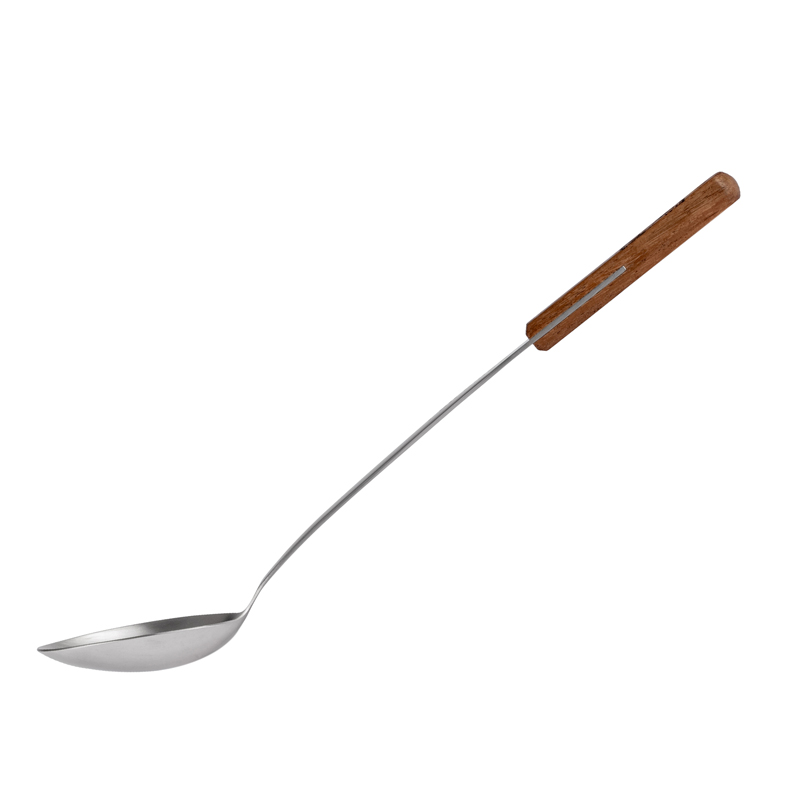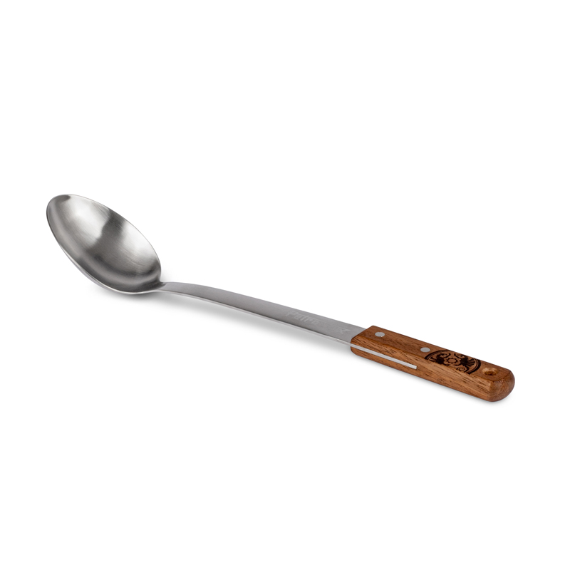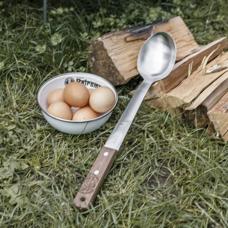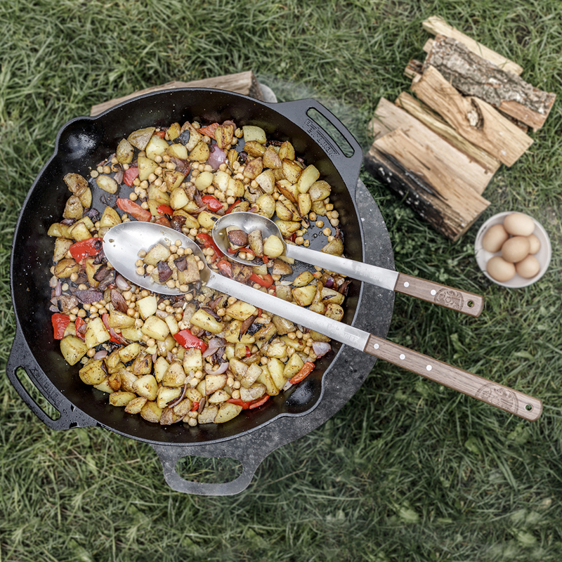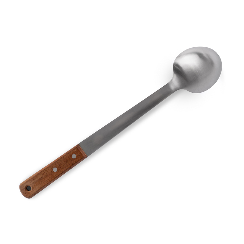 Dankzij het hoogwaardige roestvrijstalen materiaal is de lepel hittebestendig, duurzaam en eenvoudig te reinigen. De robuuste constructie en lengte van 30 cm maken hem bijzonder geschikt voor gebruik in gietijzeren pannen of Dutch ovens. Een onmisbaar accessoire voor buitenkoks die waarde hechten aan controle, stevigheid en stijl tijdens het koken.