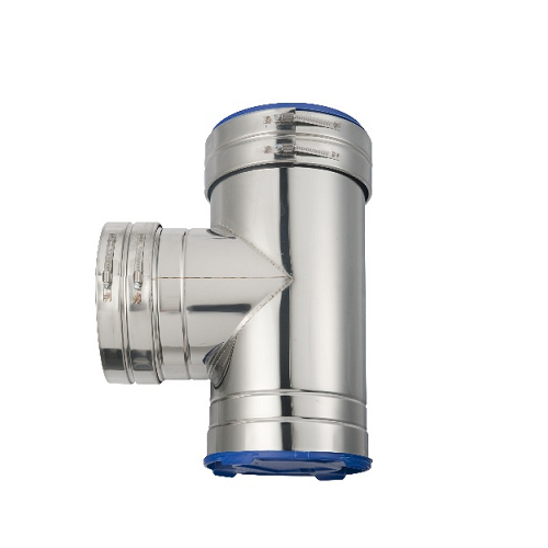 Je gebruikt dit T-stuk voor zij-aansluitingen of als inspectie- en reinigingspunt in het rookkanaal. De 90° aansluiting is ideaal wanneer er weinig ruimte is of wanneer een verticale koppeling nodig is.