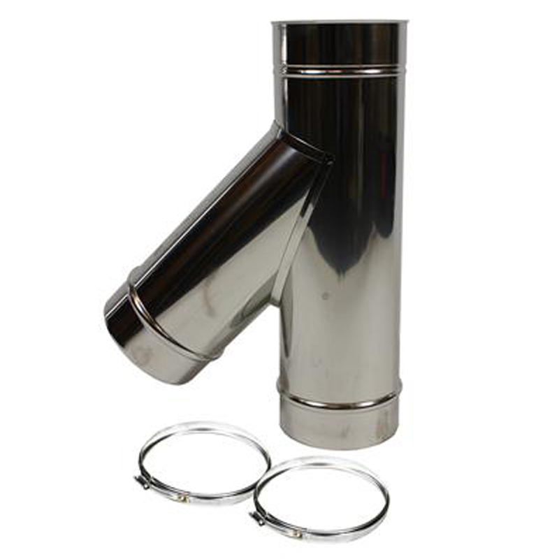 Dit T-stuk wordt vaak gebruikt om een zijtak van het rookkanaal aan te sluiten of om een reinigingspunt te creëren. Dankzij de 135°-hoek blijft de doorstroming van rookgassen vloeiend.