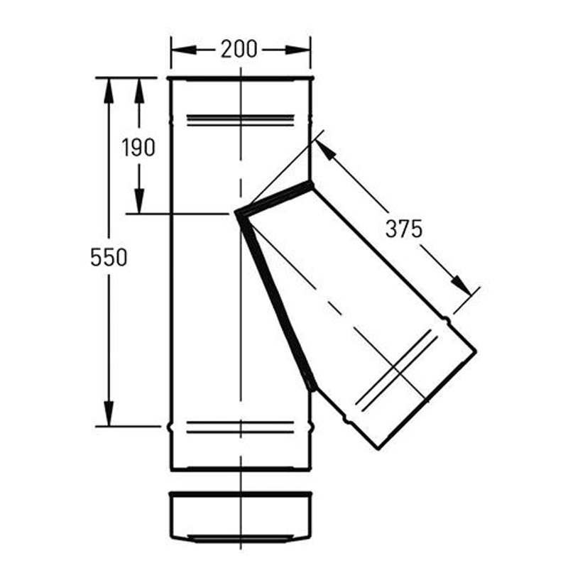 Het T-stuk Ø200 mm – 135° (45°) met deksel – Enkelwandig RVS wordt gebruikt om een extra aansluiting te maken in een rookkanaal. De schuine hoek van 135° zorgt voor een betere rookdoorstroming, terwijl het deksel toegang geeft voor inspectie en reiniging.