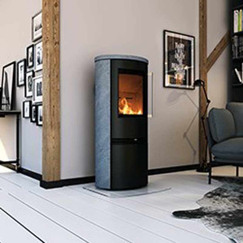 De Termatech TT21RHS is een stijlvolle houtkachel uit de TT21-serie met een bekleding van massief speksteen. Deze steensoort staat bekend om zijn vermogen om warmte langdurig op te slaan en geleidelijk af te geven, wat zorgt voor extra comfort en efficiëntie. De afgeronde vorm en brede glasdeur geven de kachel een zachte, moderne uitstraling die in elk interieur past.