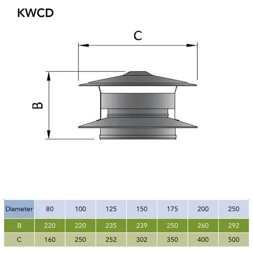 De Trekkap antivalwind Ø125 mm – Dubbelwandig rookkanaal is ontworpen om windinvloeden op de rookgasafvoer te minimaliseren. Bij harde of wisselende wind kan rook terug het kanaal in worden gedrukt, maar deze kap voorkomt dat effectief. Het ontwerp zorgt dat de rookgassen altijd veilig naar buiten worden geleid. De kap sluit naadloos aan op het Ø125 mm dubbelwandige systeem, waardoor montage eenvoudig en stevig is.
