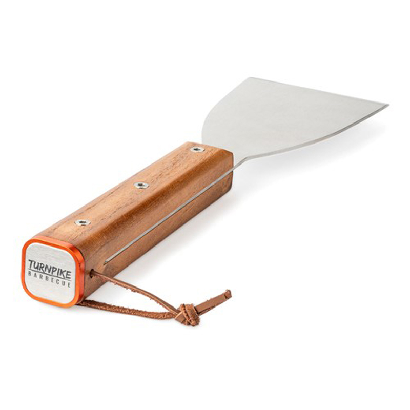 De Turnpike BBQ Burger Flipper & Scraper is een multifunctioneel BBQ-hulpmiddel waarmee je moeiteloos burgers keert én je grilloppervlak schoon schraapt. Met zijn compacte formaat van 28,5 cm lang en 8 cm breed ligt hij perfect in de hand voor precisiewerk aan de bakplaat of plancha.