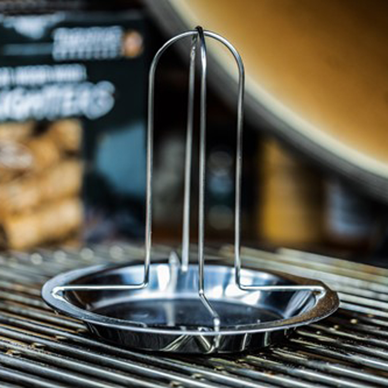 Gemaakt van stevig roestvrij staal, biedt de Chicken Sitter stabiliteit en is hij eenvoudig schoon te maken. De brede basis vangt het vet en sappen op, zodat je BBQ of oven schoon blijft. Ideaal voor gebruik op de barbecue, kamado of in de oven.