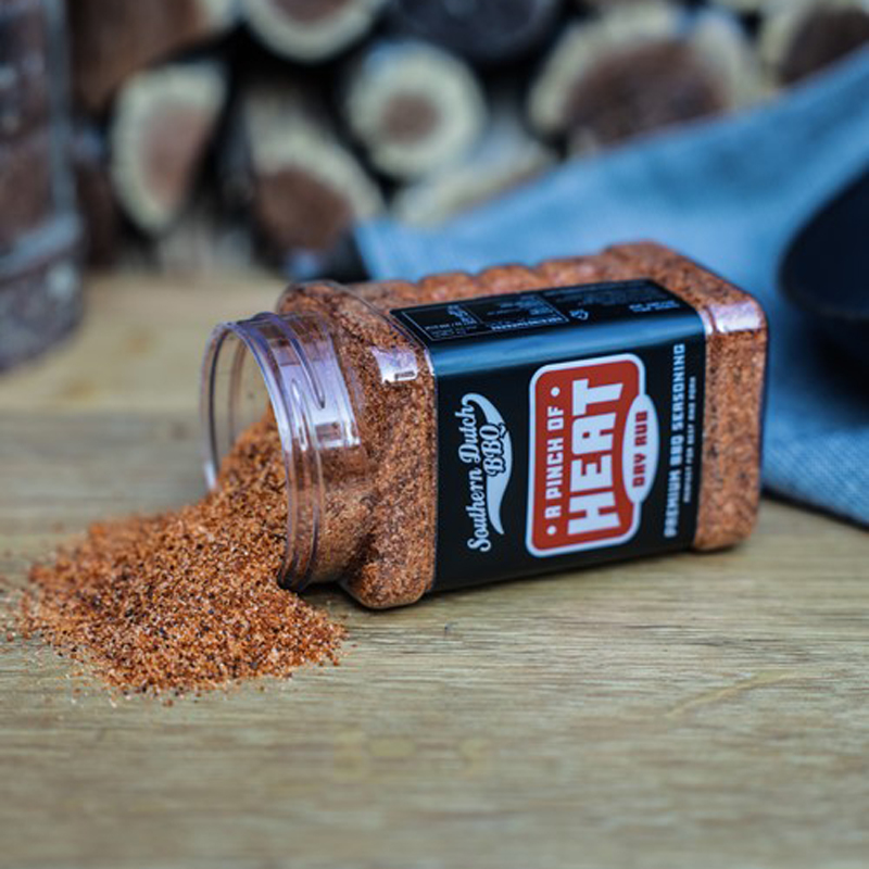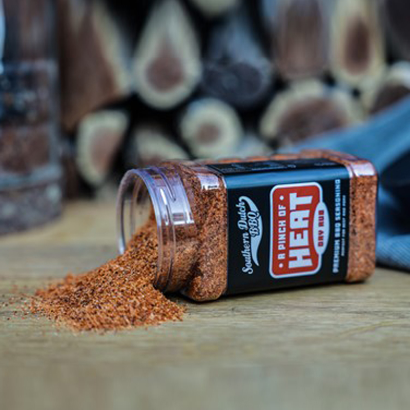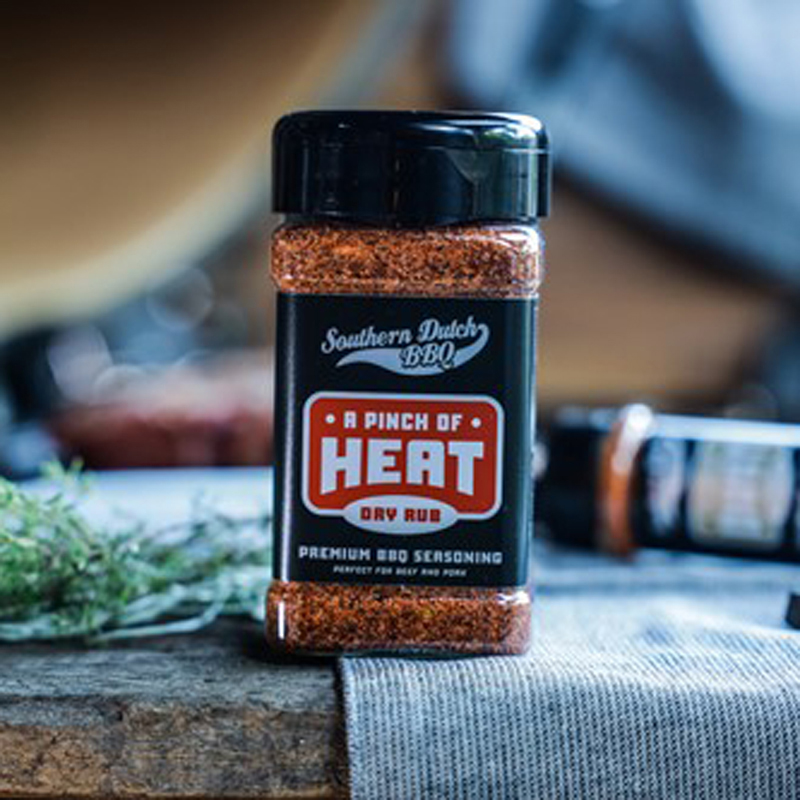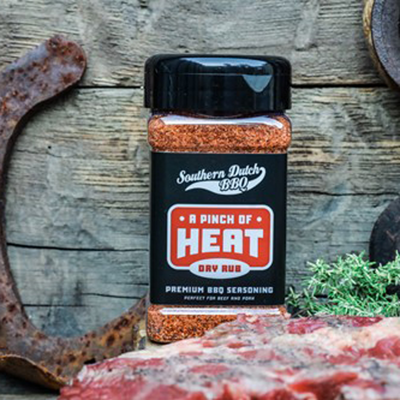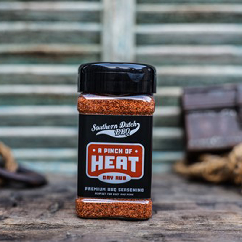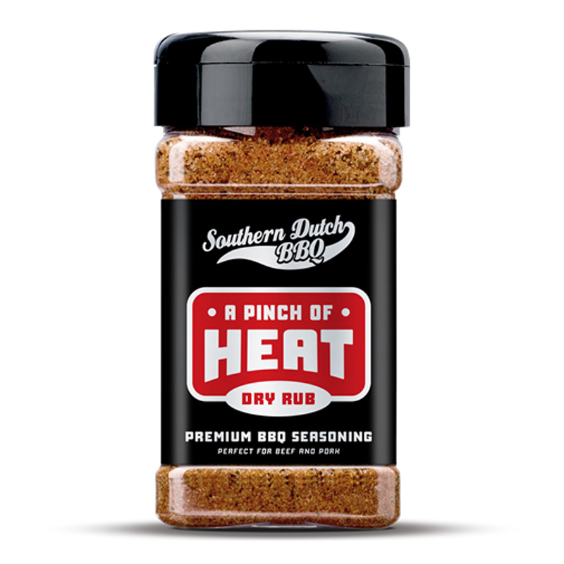 De Turnpike Southern Dutch BBQ A Pinch of Heat is een gedurfde BBQ-rub van 275 gram, ontwikkeld door het prijswinnende Southern Dutch BBQ-team. Deze rub bouwt voort op hun bekende ‘A Touch of Sweet’, maar dan met extra pit. Perfect voor wie net dat beetje meer warmte wil zonder dat het te overheersend wordt.