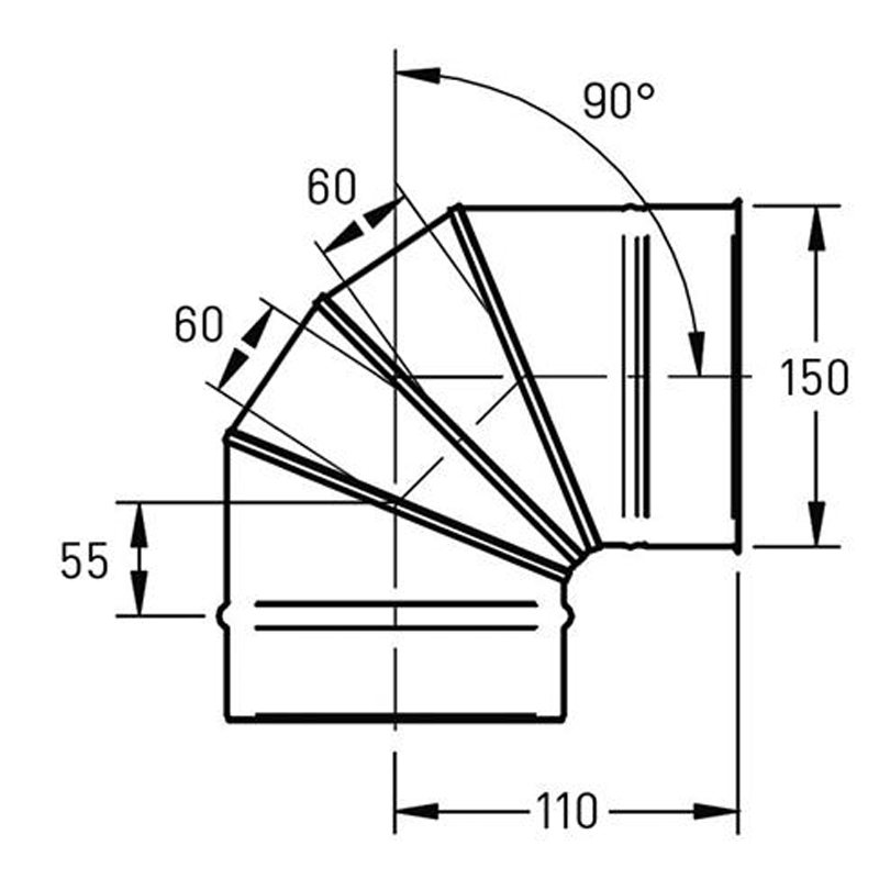 De Verstelbare Bocht Ø150 mm – 0° tot 90° – Enkelwandig RVS biedt maximale flexibiliteit bij het aanpassen van de richting van een rookgasafvoer. Je stelt eenvoudig de gewenste hoek in, waardoor deze bocht geschikt is voor uiteenlopende installaties.